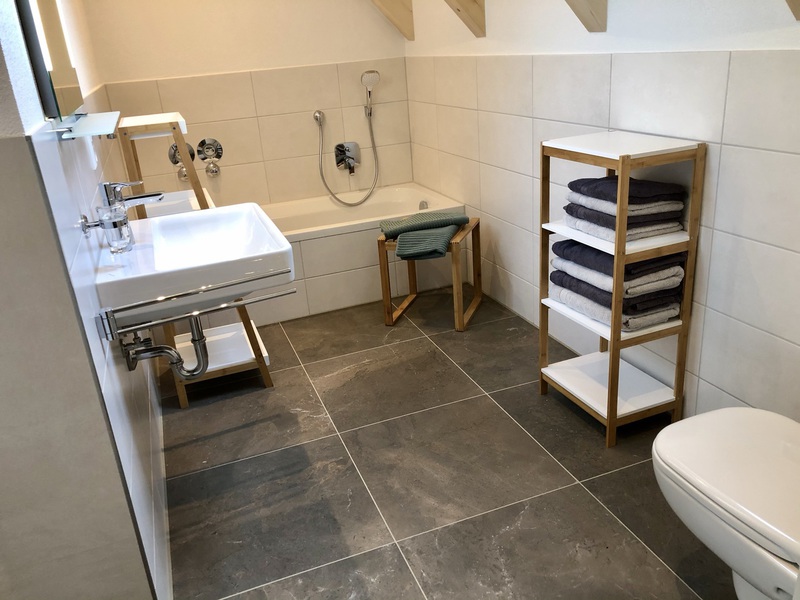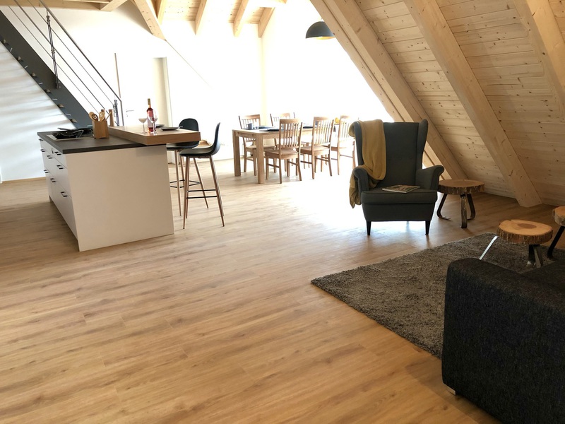 Die hellen Räume mit sichtbarem Holzdachstuhl, zwei Schlafzimmern mit Doppelbett und ein drittes Schlafzimmer mit übergroßem Familienbett lassen keine Wünsch offen.