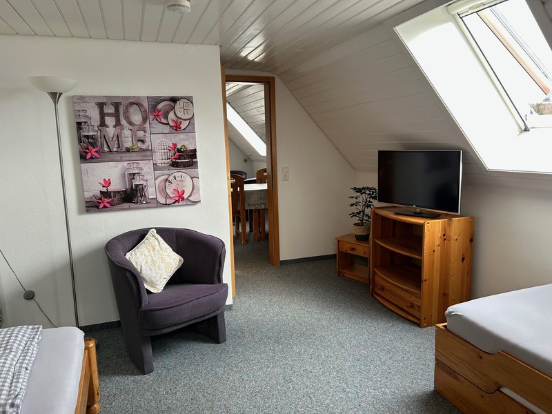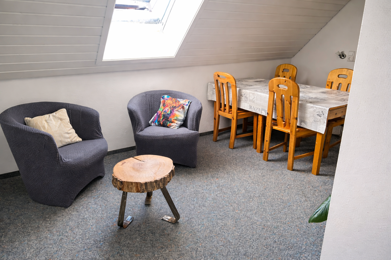 Unser Appartement befindet sich im Dachgeschoss und bietet eine gemütliche Atmosphäre.